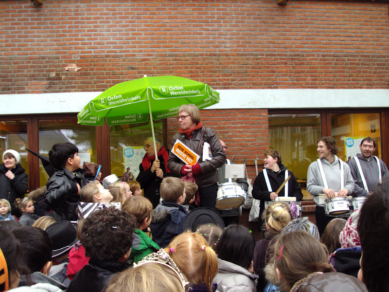 Vandaag kwamen de mensen van de Oxfam wereldwinkel met een fanfare naar