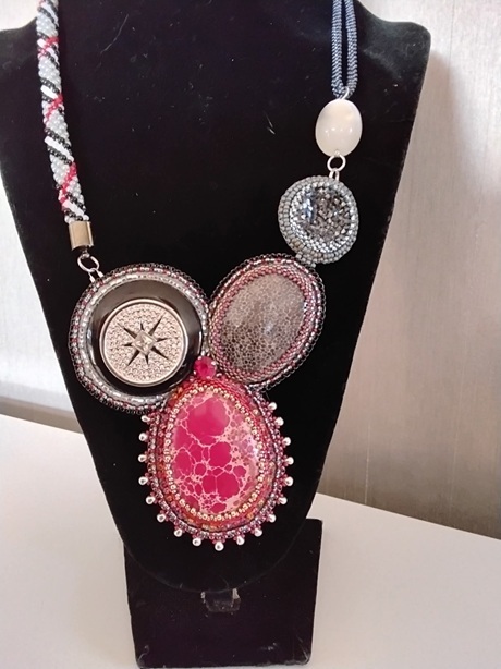 Rita Vellemans is naar eigen zeggen afkomstig uit het mooie Pajottegem maar verzeild geraakt in Lebbeke. In 1979 is zij gestart met het maken van juwelen naar haar eigen ontwerpen. Zij verdiepte zich in de techniek ‘bead embroidery’ wat betekent dat zij zich bekwaamde in het werken met mineralen en kristal. Sinds kort kreeg zij van de federale overheid de erkenning van ‘ambachtsvrouw’. Zij exposeert via de kunstraad in Lebbeke en je vindt haar ook terug op spirituele beurzen overal in Vlaanderen. (Ingezonden foto’s)