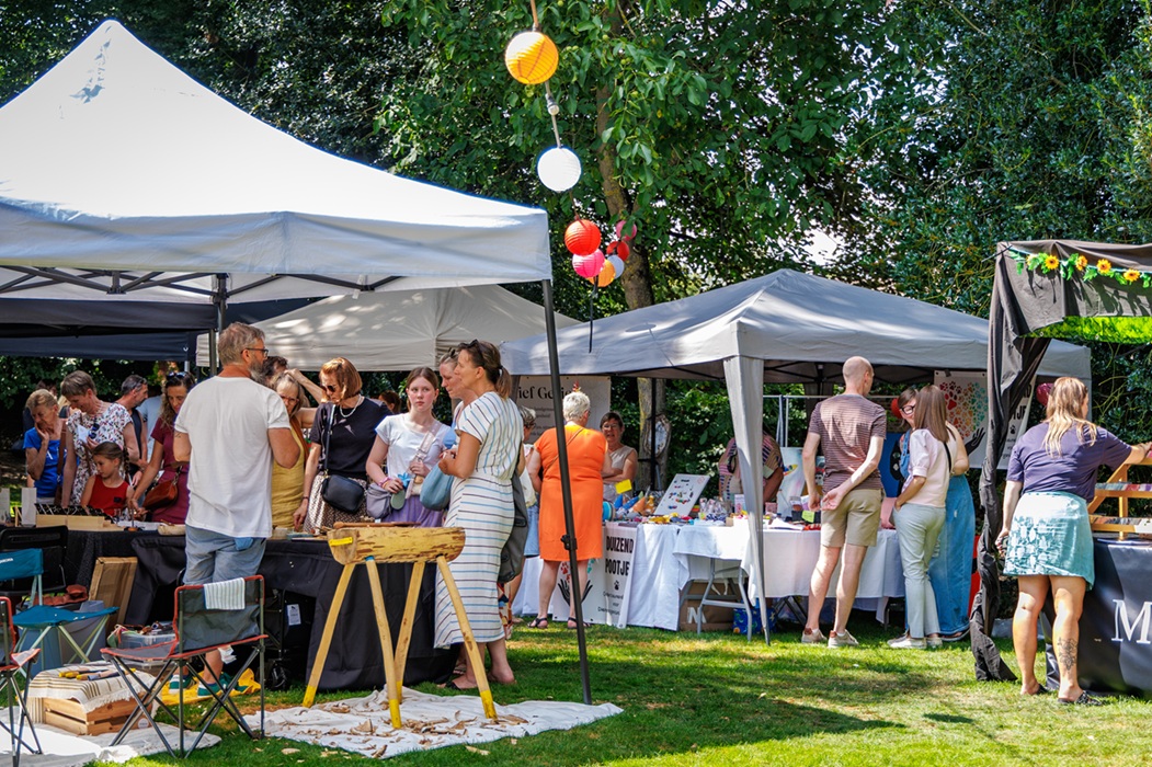 Op zondag 10 augustus werd op de site van het kasteel in Wieze een makersmarkt georganiseerd die heel wat belangstelling trok. Diverse deelnemers demonstreerden er hun kunnen op het vlak van o.m. houtbewerking, lederwaren, bloemen en planten, haakwerk, juweeltjes enz.. (Ingezonden foto)