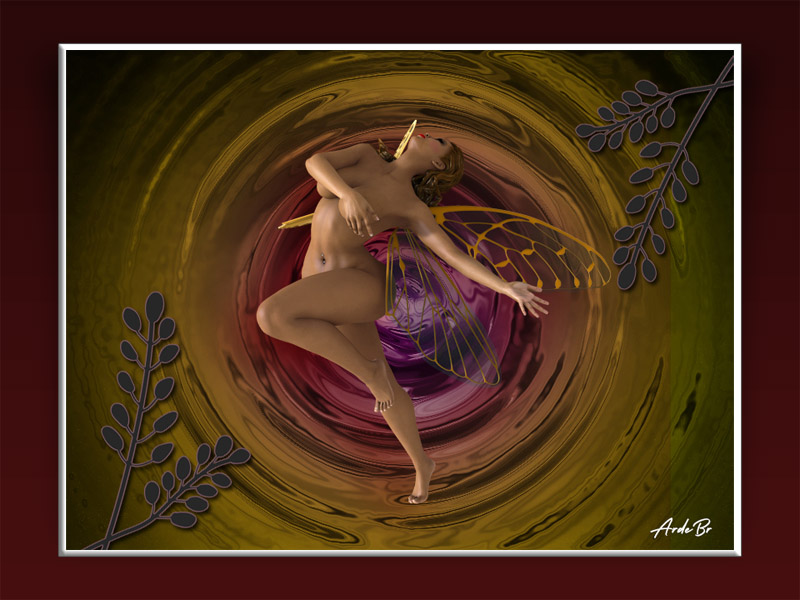 In PSE-les 214 moest je eerst een mooie achtergrond maken en hierna combineren met een afbeelding. Dit is mijn resultaat geworden.