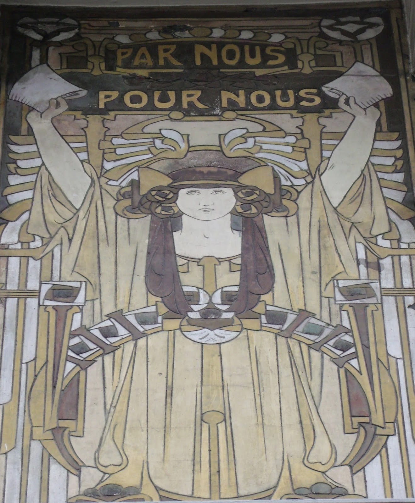 Ik ga toch nog speciale aandacht wijden aan de grootmeester van de sgrafitto in Brussel. ADOLPHE CRESPIN. Zeker naast Paul Gauchie ( architekt), gabriël Van Dievoet ; de grootsten in deze moeilijke kunsttak . Hij werkte samen met architekt Hankar en leidde Evenepoel op tot schilder. U merkt het, niet de eerste beste. Eén van de bezielers van " kunst in de straat" onder andere met scrafitto én mozaiekkunst. Toen waren de straten in Brussel een lust om te wandelen en voor de dames bij mooi weer uit te pakken met hun mooie en vooral dure kledij.
