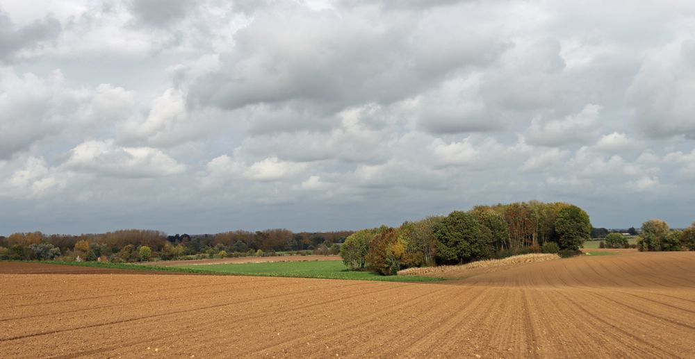 De wandeling. We zijn ondertussen met GR412 al aanbeland in Warnant-Dreye, in Haspengouw, dus volop in landbouwgebied. GR412 is dan wel de Sentier des terrils, maar terrils zijn er in de verste verte niet te bespeuren. En toch is het landschap hier grotendeels vlak en dat verklaart meteen de zwakte van dit stukje GR: er valt zo goed als niets te beleven en een ruilverkaveling oude stijl heeft hier het hele gebied zo goed als volledig verknoeid, met lange, rechte, brede betonwegen, helemaal in de geest van de toen geldende gebruiken. Misschien herken je het wel opdeze kaartof opdeze… Als wandelaar is dit niet meteen wat je zoekt, zeker als je denkt een GR te volgen, maar die lijdt hier onder een verschijnsel dat ik al eerder aankaartte: langeafstandswandelpaden uitzetten rond een bepaald concept is gevaarlijk, omdat je soms lange afstanden moet overbruggen die helemaal niet in het (GR-)concept passen. Dat is zeker het geval vandaag: we stappen net geen 13 km en de TWQ bedraagt… 7%. Onverharde wegen zijn hier een zeldzaam goed en we mogen af en toe wel eens rond een bos(je) stappen, maar nooit er doorheen. Onze score lag dan ook laag: 6/20. De typische dorpjes met de opvallende namen konden daar niets aan veranderen.
