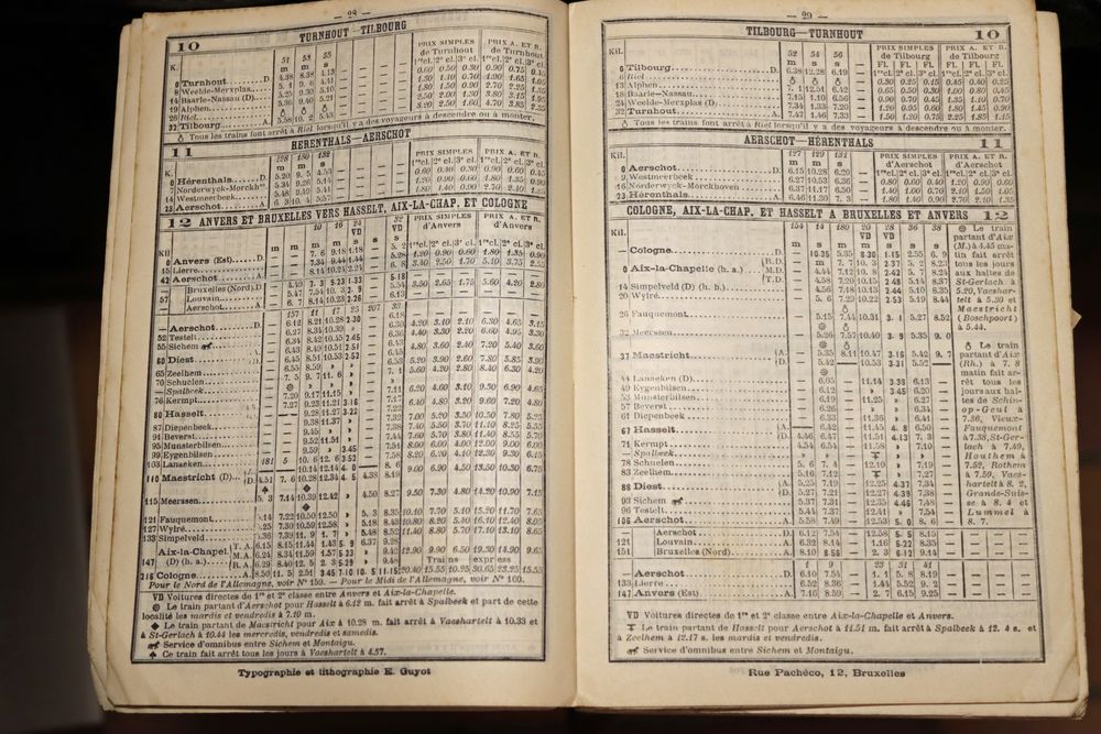 Uit het spoorboekje van 1892, dat geldig was van 1 mei tot… 31 mei. Zelem als dwerg tussen een hele reeks reuzen…