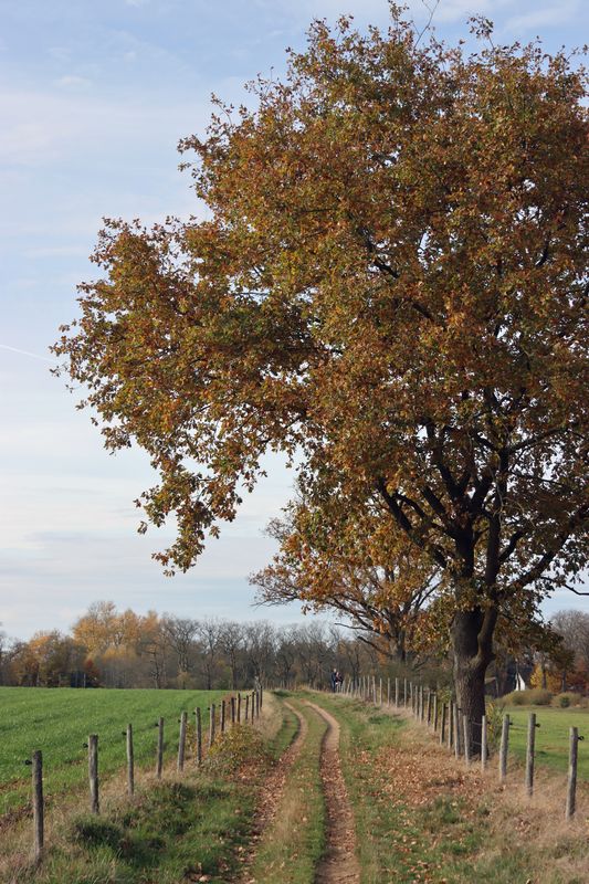 Maar genoeg uitweiding over hoe de tocht van vandaag door ons vorm gegeven werd. 64% van het traject liep over onverharde, rustige wegen, vaak in wat er nog resteert van de herfstige schaduwen van de bomen. Het werd dus echt een topwandeling met een TWQ van 64%, al zagen we de Zwarte Beek zelf niet zo vaak: we kruisten ze tweemaal en voor de rest zagen we af en toe langere delen van de vallei waarin we de beek konden vermoeden. Natuur was het hoofdingrediënt, de Loboshoeve zo ongeveer het enige vermeldenswaardige bouwwerk onderweg, al was die grotendeels aan het oog onttrokken. Wij quoteerden 18.5/20 en dat zegt hopelijk alles over deze wandeling, die trouwens zo goed als vlekkeloos bewegwijzerd is met rode driehoekjes. Dat vind je o.m. terug in defotoreeks.