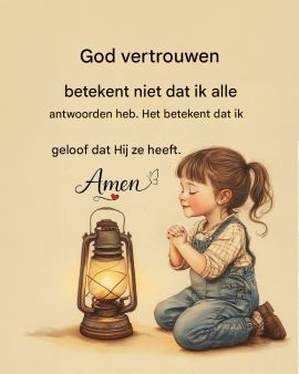 GEDICHT-WEES MAAR NIET BANG👼17 december👼 Wees maar niet bang de Heere zal met je gaan, ook al zijn er vele vragen Hij zal je in alles bijstaan. Wees maar niet bang wat je ook op je levensweg ontmoet, als de Heere met je meeloopt dan komt het allemaal goed. Wees maar niet bang en zie op Hem alleen, als er moeilijke tijden komen helpt Hij je er doorheen.Janneke Troost 1001gedichten