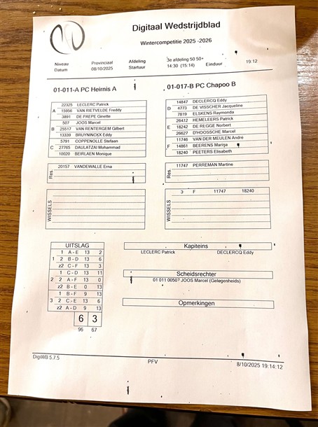 • COMPETITITIE 15 DECEMBER 2024 pc heirnis A en B