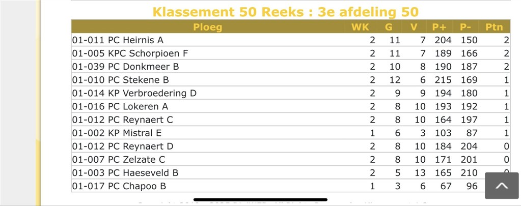 Pc Heirnis A - Pc Terheiden C: 8 -1 Pc Zelzate C - Pc Heirnis B: 2-7