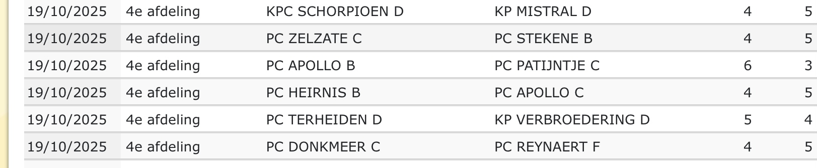 Pc Heirnis A - Pc Terheiden C: 8 -1 Pc Zelzate C - Pc Heirnis B: 2-7