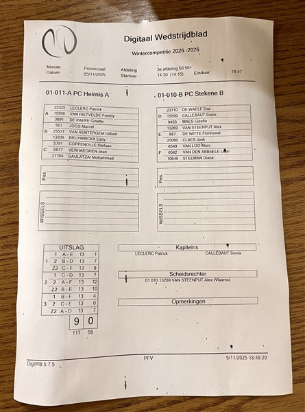 • COMPETITIEDAG 22 DECEMBER PC HEIRNIS A EN B vervolg