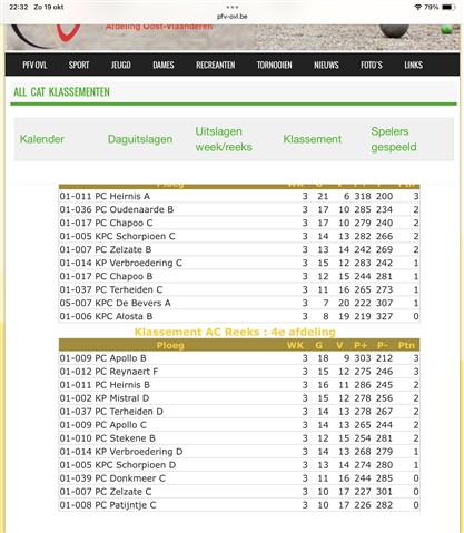 Voor ieder van onze twee Heirnisploegen stond er een belangrijke match op het programma…belangrijk om bij winst bovenaan het klassement te kunnen blijven pronken. De A ploeg trok naar de mannen en vrouwen van Chapoo en de B ploeg mocht thuis proberen om de Ajuinen van pc Apollo te schillen. Voor beide ploegen verliep de start zowat gelijkopgaand. Na de eerste ronde leidde de A ploeg met 1-2 en de B ploeg stond met dezelfde cijfers aan winst (2-1 dus) Net zoals in “Blokken” is de tweede ronde een gevaarlijk iets. Onze misschien wat meer mature A-ers wisten op een fraaie manier de stand op te drijven tot 2-4 maar de B-collega’s wisten slechts édén punt te scoren wat de stand op 3-3 bracht. Het beloofde dus een erg spannende wedstrijd te worden na de boterhammen. Bij de A-ploeg voerde de kapitein een taktische wissel door, in de Snoekstraat was wisselen géén noodzaak! Of deze wissel of niet-wissel een rol heeft gespeeld, wie zal het zeggen, de cijfers antwoordden: de A-ploeg gooide een 3-6 “chapeauke” en de B-ploeg werd helaas een 4-5 ajuinensoepke geserveerd… Er is natuurlijk geen ramp gebeurd, verliezen hoort nu eenmaal bij de weg naar de top maar winnen maakt die weg wel wat makkelijker. Volgende zondag met nieuwe moed en vereende krachten aan de slag! HEIRNISSEU. ….. Benieuwd wat onze 50-plussers er komende woensdag van zullen brengen…Wait and see…