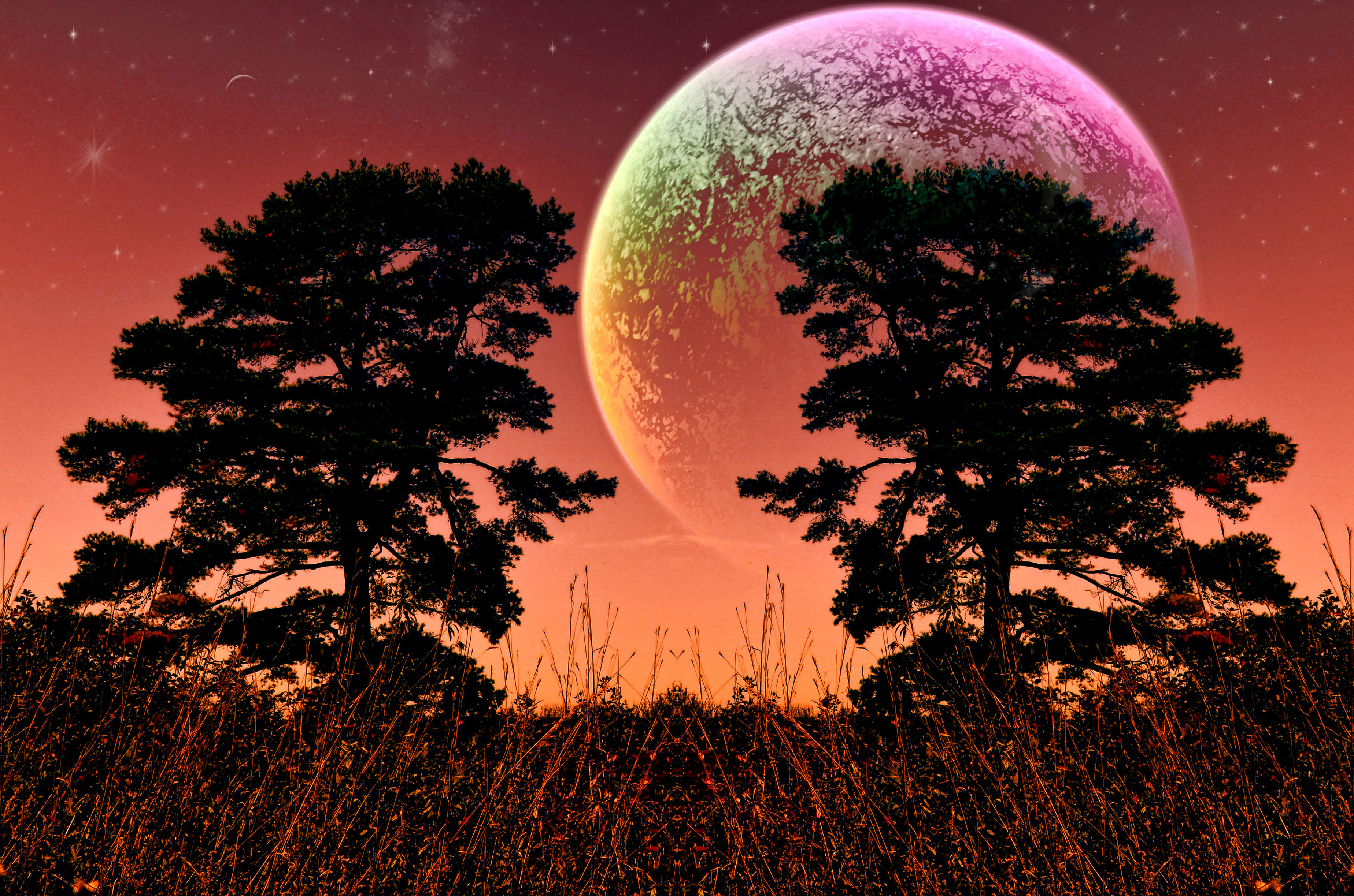 Another theory is that the center star might actually be a binary star system, in which two very close stars are dying simultaneously. Their orbits are still feeding off of each other and may even be gravitationally distorting each other’s atmospheres. This highly magnetized relationship is producing a giant cloud of combined star matter — mostly hydrogen and helium particles — encompassing all other stars and planets around it.