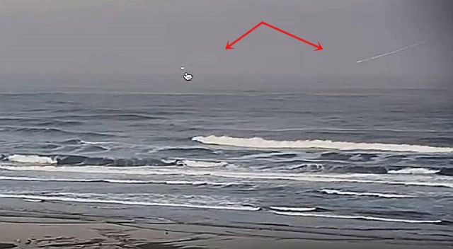 While some people suggest that the bright orb is the light on the mast of a vessel it does not explain the incoming object and the sudden disappearance of the orb at the exact moment the incoming object falling into the ocean. Just a coincidence or is it connected to each other?