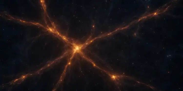 It draws the cosmic web, because on the largest scales, galaxies are arranged into a web of filaments and galaxy clusters, which matches the distribution of dark matter in both simulations and maps of gravitational lensing, and dark matter’s gravity drew normal matter into those structures, giving the universe its large-scale architecture.
