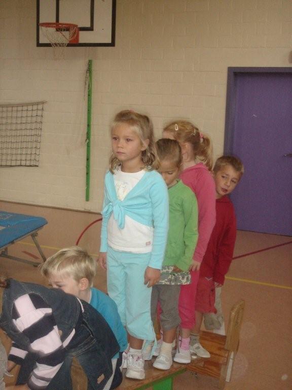 Als de zaal klaar staat met turntoestellen kunnen we beginnen met sporten. Eerst enkele belangrijke afspraken maken daarna beginnen we eraan. Onze kleuters krijgen tal van bewegingsmogelijkheden en verleggen keer op keer hun grenzen. Wil je meer foto's zien, kijk dan zeker bij favorieten 'wekelijkse portie sport'.