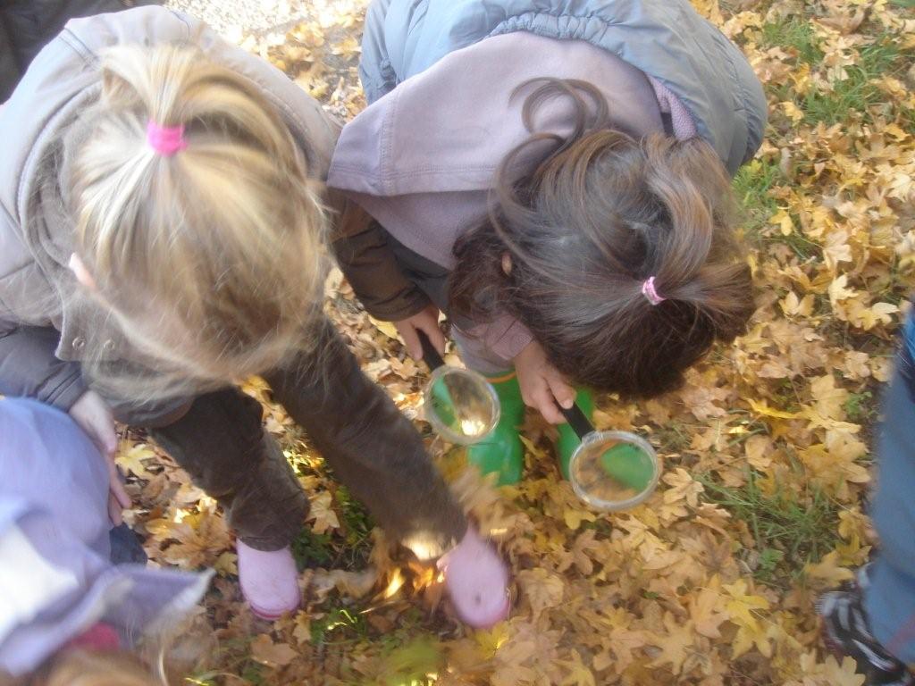 Tijdens de speeltijd trokken we onze laarzen aan en gingen we op speurtocht... wie zoekt die vindt de beestjes. Met een vergrootglas gaat het wellicht beter. Ook onze loeppotjes werden erbij gehaald!