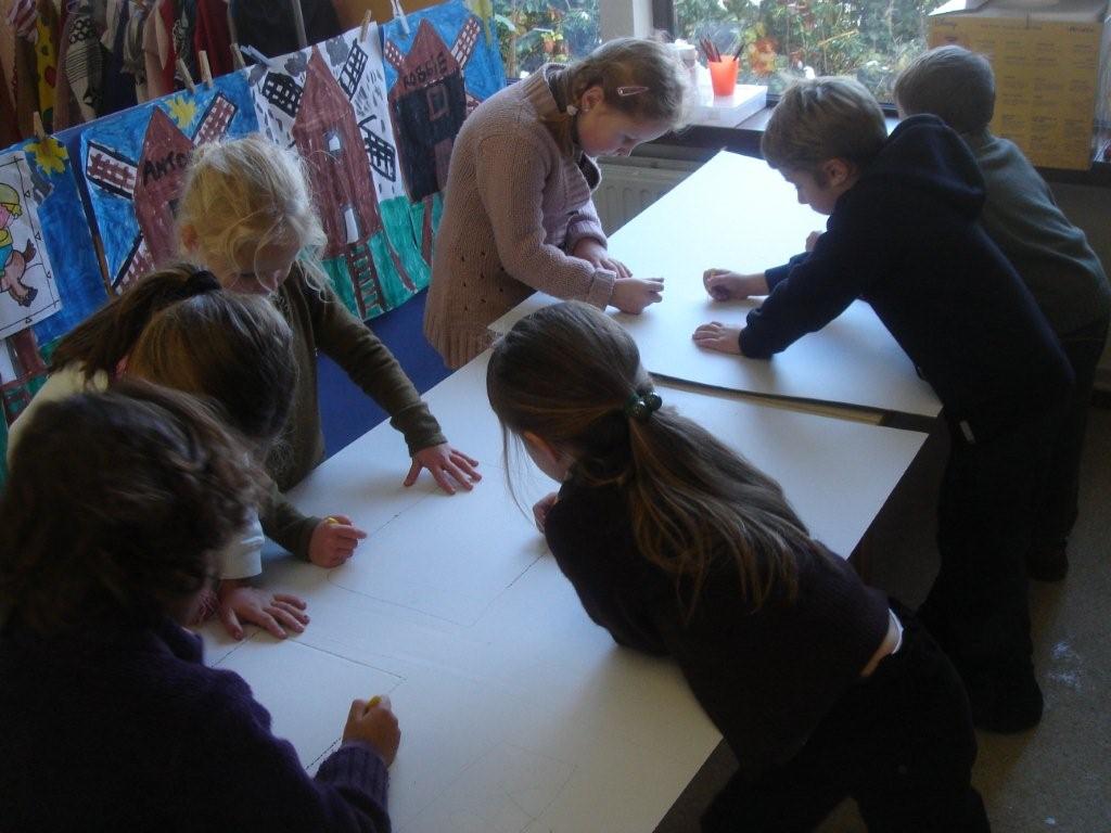 Nog enkele daagjes en onze mama's, papa's kunnen weer het beste uit zichzelf geven op onze flowerpowerfuif! Onze rakkers gaan misschien niet naar de fuif... maar ze brengen alles wel in gereedheid om de zaal aan te kleden. Afmeten, tekenen, prikken, overleggen,... een echt groepswerk!