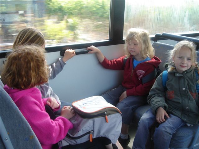 Rond 15.00u moesten we spijtig genoeg terug schoolwaarts keren. Vlug onze turnpantoffels uit en wachten op onze lijnbus richting school. We kregen allemaal nog een leuk rollebollesticker!