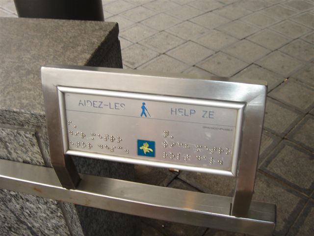 Voor we de roltrap namen naar beneden, voor een kijkje te nemen naar de metro, botsten we op iets heel geks. Een bordje vol bolletjes alsook bolletjes op de grond. Hein, kent er dit iemand? Dit is brailleschrift voor mensen die niet kunnen zien. Zo'n mensen zijn blind. Aan de hand van zo n brailleschrift worden zij verder geholpen en lettertjes. En de bolletjes op de grond? Hier kunnen de blinden voelen tot waar zij mogen stappen, een grenslijn,...