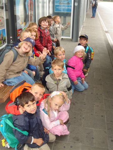 Moe maar tevreden keerden we rond 15.00u richting school terug. Eerst nog even wachten aan de bushalte. Weten we nog welke bus we moeten nemen? Ja hoor, goed onthouden, lijnnummer 137.
