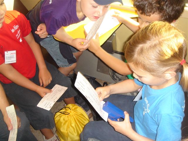 Het duurde niet lang of de treinbegeleider kwam langs. Die kwam de kaartjes knippen, voor 1 keer mochten wij dit zelf doen. Waw..precies het nietjesmachientje van de juf!
