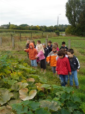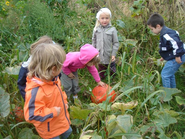 En dan kon de ontdekking beginnen! Waw, juf, kijk daar is een dikke pompoen. Kijk, hier een gele, hier nog een kleine, ... ogen tekort alsook handjes tekort. Elke pompoen kwam in ons vizier en werd overspoeld door handjes. Waw, wat een dikke harde pompoenen!