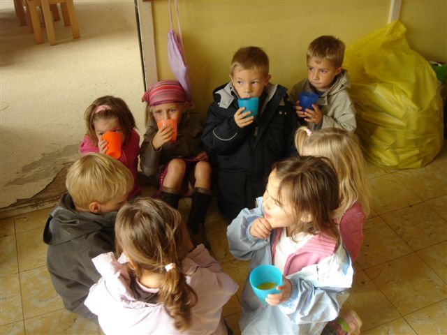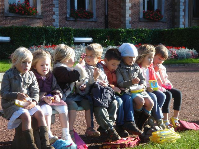 Op maandag 24/9 startten we het thema 'dilbeek vroeger en nu'. Enkele kleuters hadden leuk prentmateriaal mee, wat zeker nog aan bod komt. Het weer was niet op zijn best maar toch trokken we erop uit - richting kasteel, het park, de Sint Alenatoren. Eens aankomen was het al effe tijd voor een koekje en een drankje! Daarna het serieuze werk!