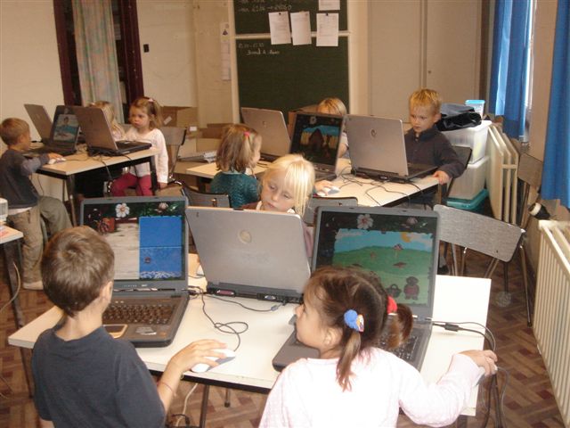 Op vrijdag 21/9, na onze turnles, werden we verwacht in het klasje van juf Karen. Zij komt 4keer per jaar langs met laptops voor elke kleuter. Deze keer was het de eerste keer... dus op verkenning. We leerden de muis hanteren, zoals op de computer in onze klas. Wat is klikken, wat is slepen? Aan de hand van fijne spelletjes oefenden we het werken met de muis. Voor wie dit al kon,gingen we een stukje verder. Het was een leuk uurtje laptoppen. We kijken al uit naar een volgende keer!
