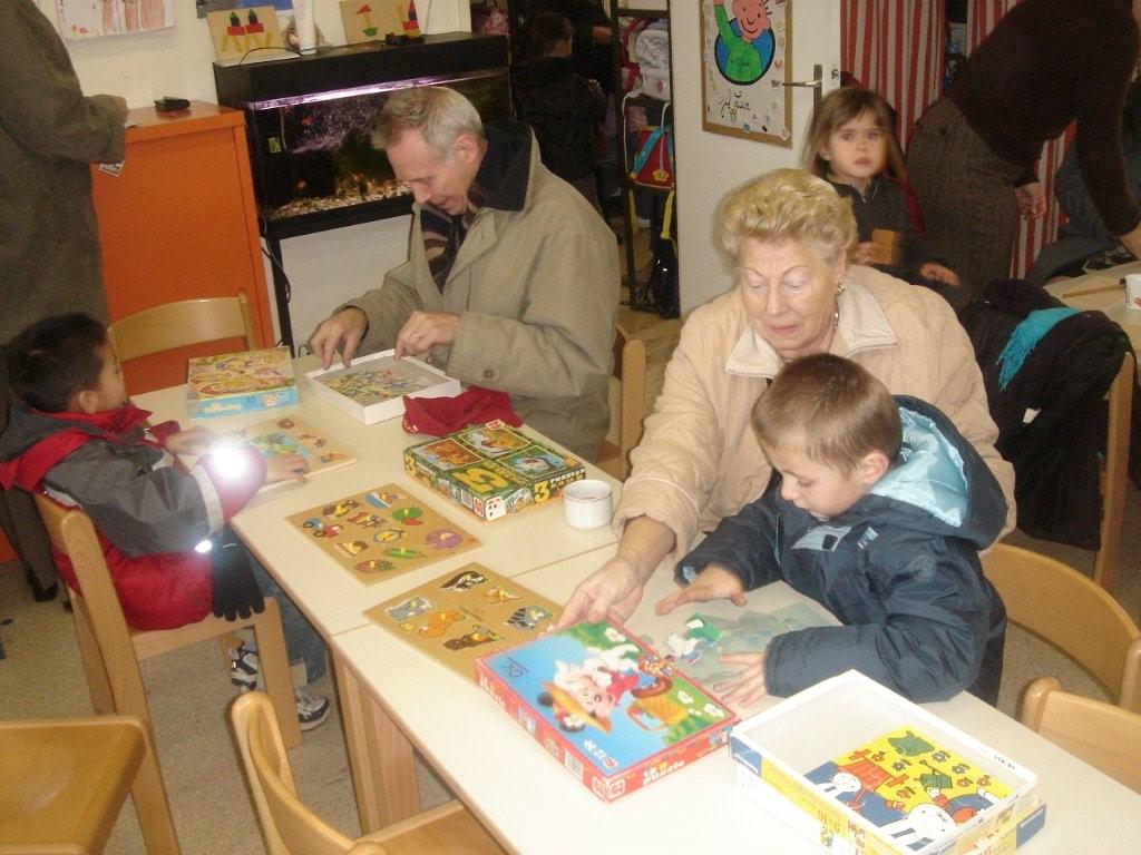Samen met oma en opa puzzelen,  eerst de randjes dan de binnenkant!