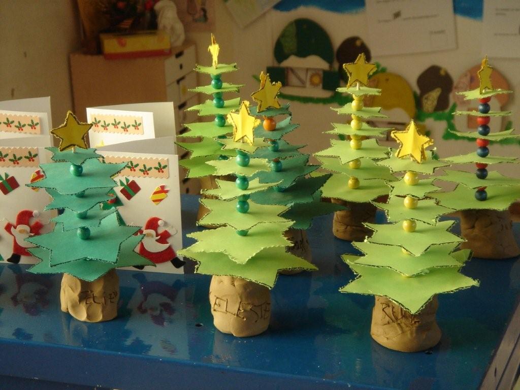 De bengels die klaar waren met het zoutdeeg die werkten verder aan hun sterrenboom.  Zij werkten met het prikkussenn en de priknaald.  Er werden 6 sterren uitgeprikt, alle 6 verschillend.  Onze bengels ordenden de sterren van groot naar klein zoals een kerstboom, kleide een stam en vervolgens nog een ster als piek!  Fijne motoriek, ordenen van groot naar klein, vrij vormgevend werk met klei,...op deze manier maakten al onze bengels een leuke boom!