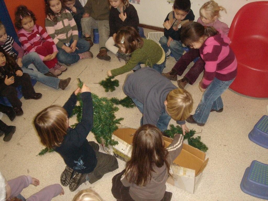 Klik op de afbeelding om de link te volgen Nu de boom gemaakt is, kunnen we hem versieren.  Joepie, balletjes en slingers... we weten niet wat eerst te nemen.  Enkele duidelijke, concrete afspraken worden gemaakt want de kerstboom krijgt een plaatsje in de poppenhoek waar onze rakkers en bengels in de namiddag in vertoeven.  Plezier verzekerd!