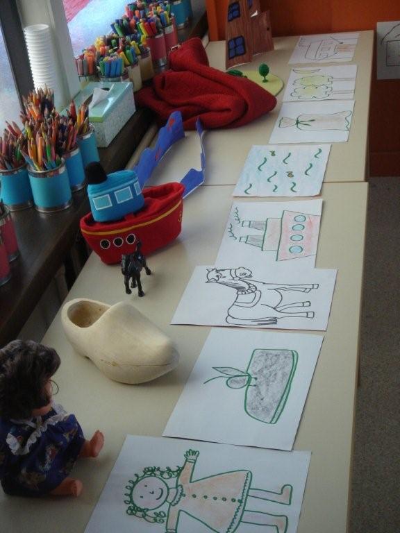 Klik op de afbeelding om de link te volgen Op de voorwerpen zoeken, de passende prenten zoeken nog niet genoeg was.  Nu moesten onze kleuters ook nog nadenken welk liedje erbij hoorde.  Onze kleuters werden echt uitgenodigd om intens na te denken.  Zo zongen we samen de liedjes 'zie ginds komt de stoomboot', zie de maan schijnt door de bomen, 'de zak van sinterklaas', 'leg wat in mijn schoentje',...en vele anderen.  Soms was het echt wel zoeken.