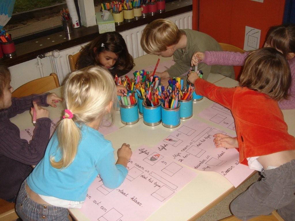 Klik op de afbeelding om de link te volgen Allemaal tegelijk schilderen dat zou niet goedkomen.  Daarom maakten we groepjes.  Enkele rakkers maakten al een brief voor de sint.  In de kring werd de brief samen met heel de groep opgebouwd.  De kleuters probeerden zo het juiste prentje te zoeken voor wat de juf vertelde.  Daarna individueel werk aan de tafel.  Deze keer geen prentjes knippen maar wel zelf de beelden weergeven met potlood en stift.  Wie weet nog hoe de brief  ging?  Op deze manier memoriseerden onze rakkers hun brief voor de sint.