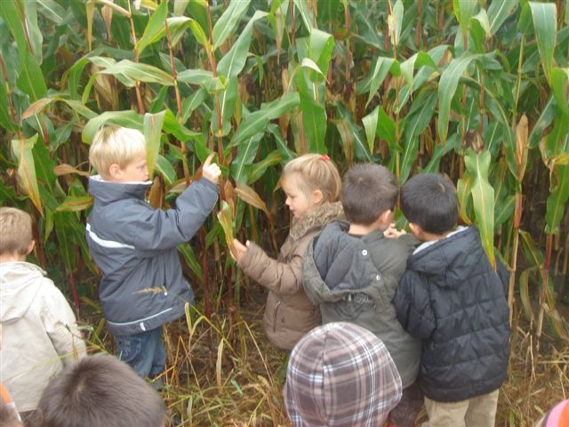 Hé juf kijk die maïsplant wordt helemaal geel en bruin en de maïskolf gaat afvallen of is al wat stuk! Tja, dat was zoals bij de pompoenplant... die werd ook helemaal bruin! Enkele kleuters wisten nog wat dit te betekenen had! Tijd om te oogsten!! De boer zal heel binnenkort met zijn snijmachine langskomen om heel de maïsplant weg te nemen... alleen de wortels blijven in de grond zitten.
