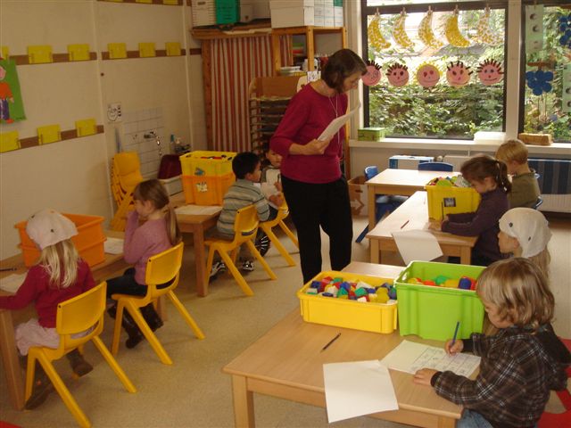 Op donderdag 11/10 stond juf Denise klaar in onze klas met allemaal boekjes en grijze schrijfpotloden. Onze rakkers wisten onmiddellijk wat dit te betekenen had - TESTJES ! En gelijk hadden ze. Juf Denise verdeelde de 15 rakkers in 2 groepjes en dan ... werk aan de winkel. Een heleboel opdrachten stonden ons op te wachten. Goed luisteren, tellen, nauwkeurig werken, kleuren,... het hoorde er allemaal bij. Geen lachertje! Juf Denise legde elke opdracht goed uit en daarna konden we zelfstandig verder! Wat was het dikwijls moeilijk om ons mondje dicht te houden en ieder voor zich te werken...
