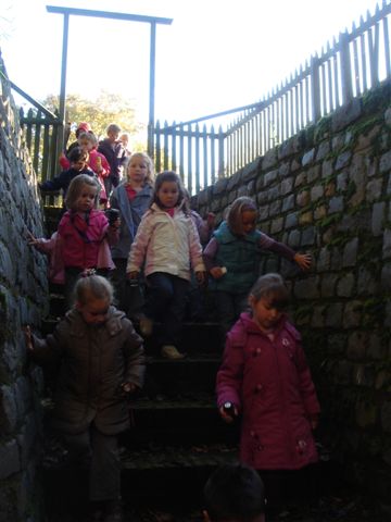 De gids wist ons ook te vertellen dat de ijskelder nu geen dienst meer doet als ijskelder, wel als vestiging voor de vleermuizen. Heb je er al gezien? Maar neen juf dat zijn nachtdieren! Vleermuizen houden niet van mensen, zij zijn bang van lawaai! Griezelig maar spannend!