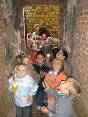 Op woensdag 26/9 stond er omstreeks 8.45u een gids ons op te wachten aan de ijskelder. Een ijskelder? Daar hadden onze bengels en rakkers nog nooit over gehoord. Onze gids vertelde ons er meer over... luisteren was deze keer echt wel moeilijk: veel beleven, angsten overwinnen en onderzoekend zich opstellen stonden hier centraal.