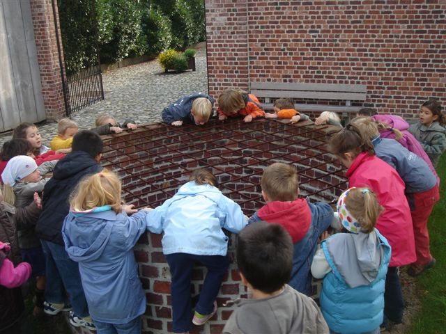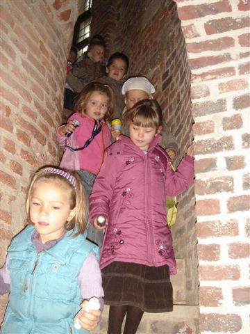 Ziezo, de ijskelder en de sintalenatoren en het kasteel zijn bezocht! Nu terug naar onze klas, want meester Wannes wacht op ons om te turnen. Voorzichtig nemen we terug de trap naar beneden. Buiten vormen we 2 aan 2 een rij om terug naar onze wijkschool te stappen. In de klas werken we er later verder rond. Het was een fijne, leerrijke, spannende voormiddag!