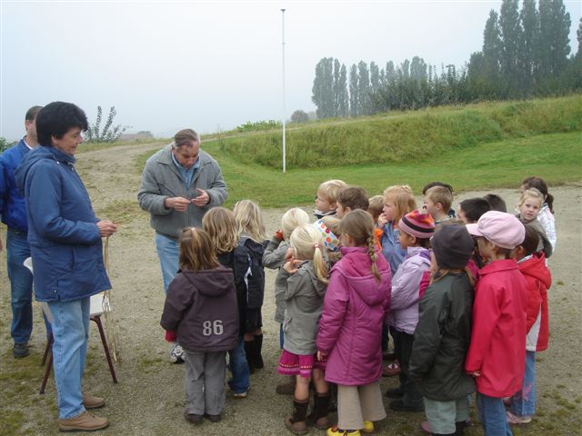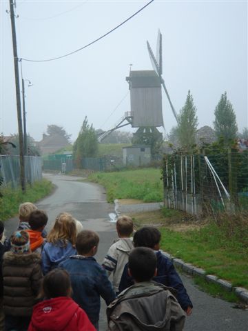 Ondanks het slechte weer van gisteren, werd ons uitstapje naar de luizenmolen uitgesteld maar niet afgesteld. Neen hoor, want vandaag was er misschien geen zon maar ook geen regen dus weg waren we. Van ver zagen we de molen staan... zo wisten we welke weg we uit moesten!