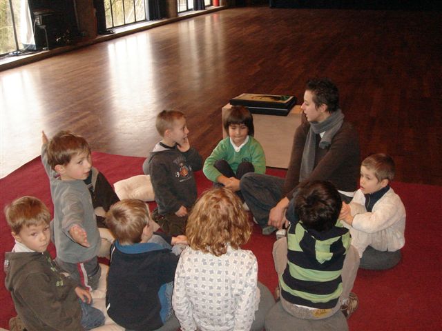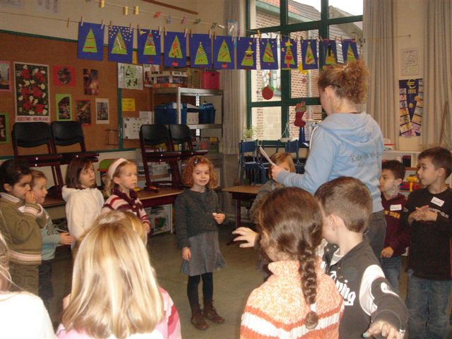De juf vertelde ons eerst het verhaal...dan luisterden we naar de tekst en verdeelden we de rollen. De begeleidster hielp ons de rollen in te oefenen. We moesten goed luisteren naar de verteller om zo tijdig te kunnen reageren. In het vel van een visje kruipen, is helemaal niet zo makkelijk. We oefenden en weten nu onze rol. We maakten kennis met onze tekst... nu nog veel inoefenen !