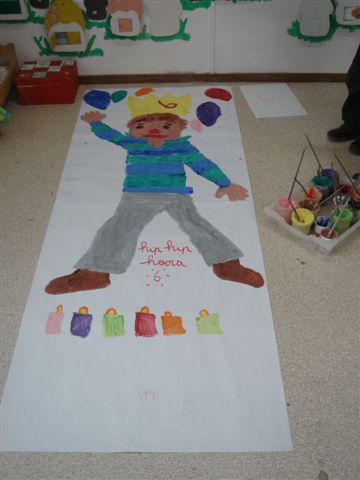Op dinsdag 16/1 vierden we ook Alexandro zijn verjaardag in onze klas. Hij is de oudste van de klas, hij werd 6 jaar. We zongen, we tekenden, we overtrokken hem op groot papier, hij maakte een leuke kroon met schaar en potlood/stif, we maakten vuurwerk....