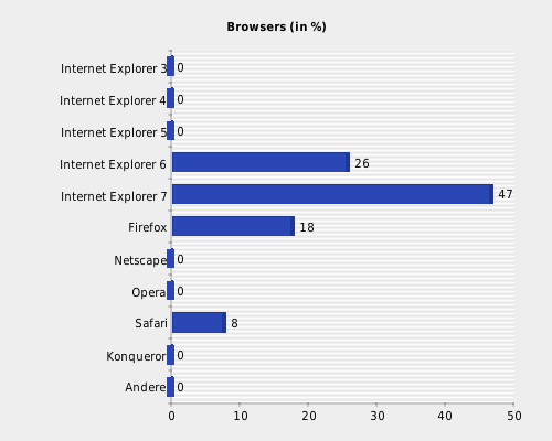 Op deze pagina krijgt u statistieken van de technische gegevens van uw bezoekers. Hier krijgt u een antwoord op bijvoorbeeld: Met welk soort computer surfen mijn bezoekers? Met welke browser bezoekt men mijn website? Hebben de bezoekers hun cookies op- of afstaan? Wat met het op of afstaan van Javascript? Met welk besturingssysteem surfen mijn bezoekers? Heeft men Flash geïnstalleerd? Op deze en tal van andere vragen krijgt u op deze pagina een antwoord, telkens grafisch voorgesteld als de cijfers.