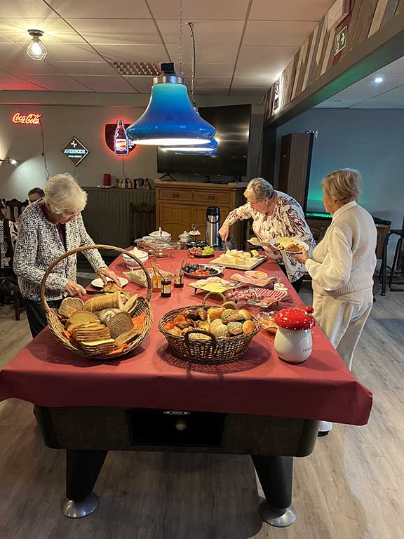 Iedereen was paraat om 9u30 om te genieten van een heerlijk ontbijt. Na dat de cava rijkelijk werd uit geschonken was het tijd om aan het buffet aan te schuiven.