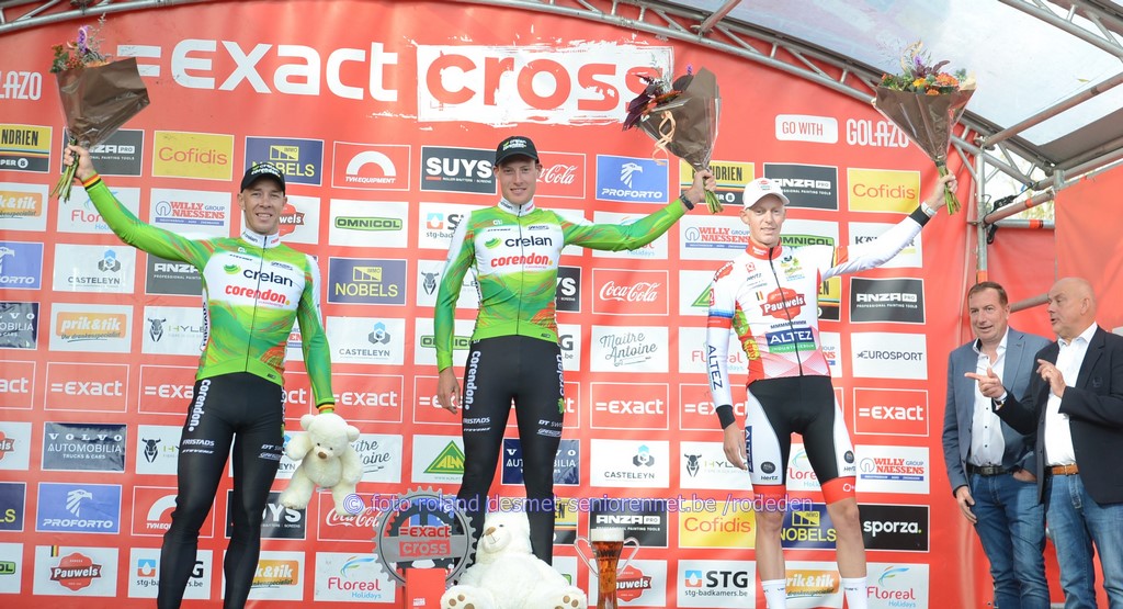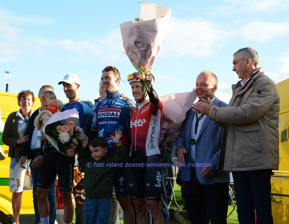 2e Stijn Damen (Nl) , 3e Jochum Ben Felix (Dtl) oud-winnaar Warre Vangheluwe (17e) blij met de zege van 'n ploegmaat volledig buitenlands podium (van de renners, toch .....)