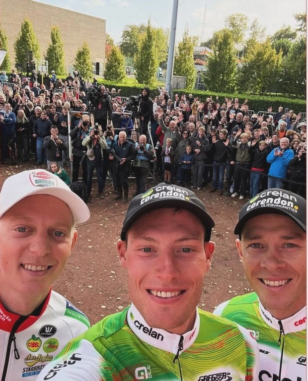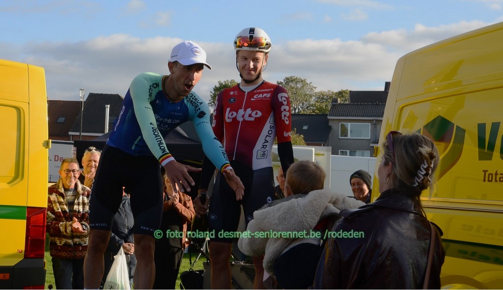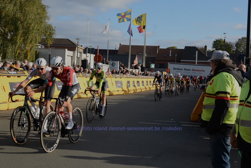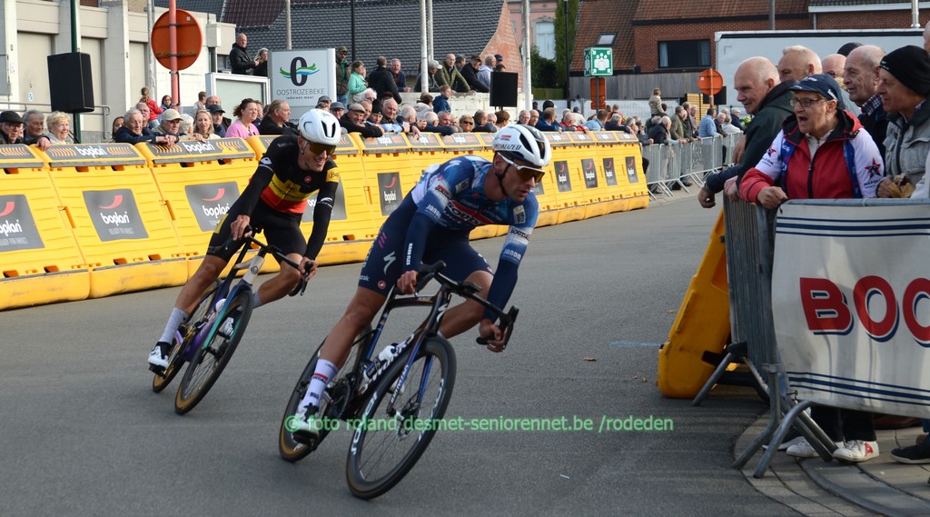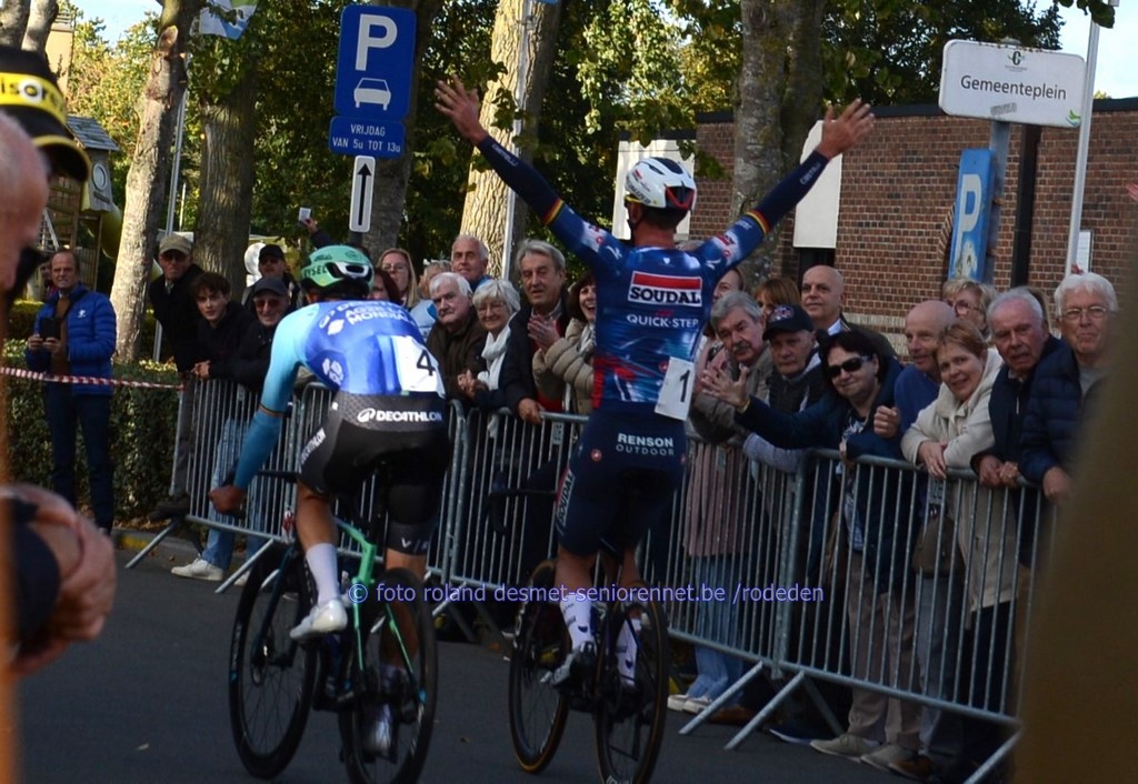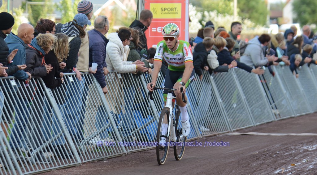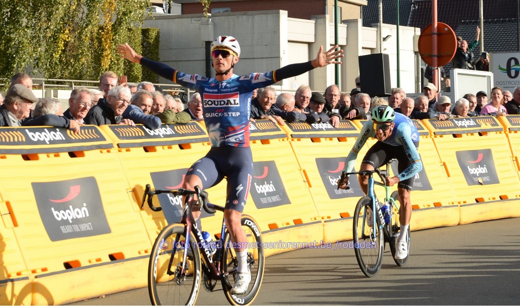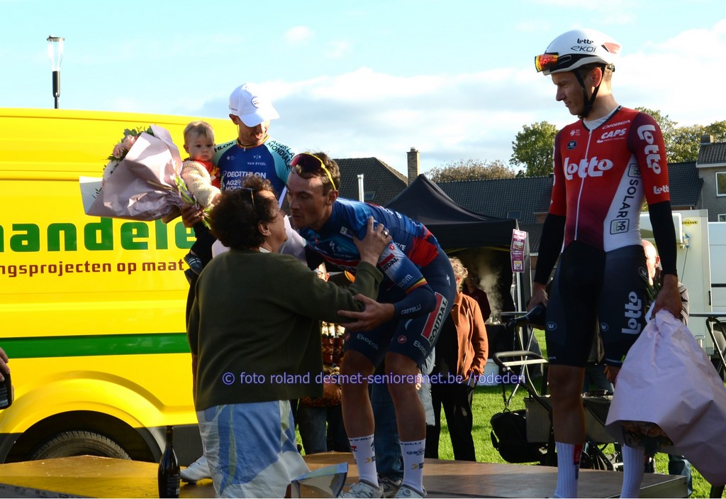 reeds het ganse seizoen sterk rijdend, Victor Vercouillie, 2 plaatsen erachter ploegmaat Alex Colman voor de laatste keer in het herfstcriterium : Tim Declercq de plaatselijke Michiel Lambrecht voor Luca Vanboven , kampioen mtb Wout Alleman , Cyriel Desal en Debondt oud-winnaar Warre Vangheluwe werd 11e Dentergemnaar Henri Vandenabeele in 2e positie, heeft terug 'n profcontract op zak voor volgend seizoen , bij 'n andere ploeg...... Warre Vangheluwe met Wout Alleman (8e) in zijn wiel streekrenner Wouter Verhulst werd 9e, Luca Vanboven (10e) in zijn spoor aan de finish : met oa. Burgemeester Luc Derudder en Commissarissen Marnix en Rony sprintje voor 16e Henri Vandenabeele voor Jakov Beirlaen en Sven Pijnenburg (Nl) Arjen Livyns won vroeger nog de GP Briek Schotte in Desselgem beeld waarvan iedereen houdt ......Pa Yves en zoontje Aloïs Dries Debondt kreeg zijn kindje Mats van vriendin Noortje (werkt in het Centrum RVV in Oudenaarde) kindvriendelijk podium in Oostrozebeke