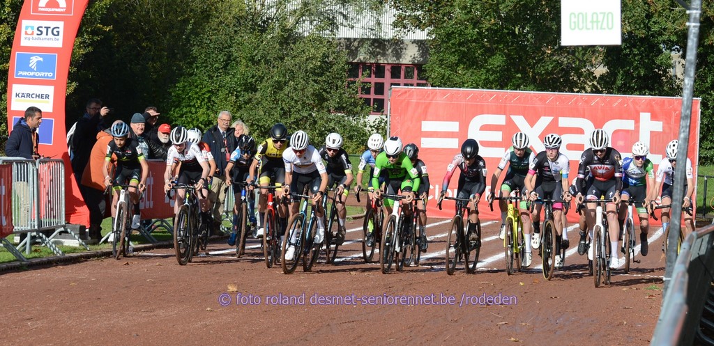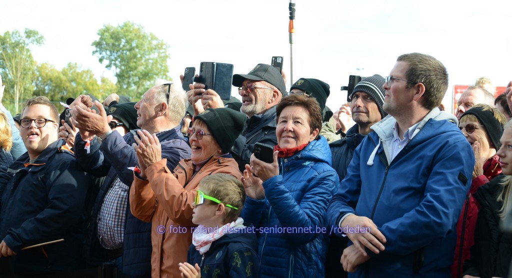 heel veel volk met het prachtig lenteweer familie Vaneeckhoutte komt supporteren voor de jonge Victor Vaneeckhoutte (Lotto) oude bekenden, koersdirecteur ex-profrenner Brecht Dhaene en vader start van 117 dames voor 134 km..... de jeugd en hun mobieltje ........(Hervé Vanlaecken) voor wat was dat nodig ?? Eén van de grote favorieten , de pijlsnelle Alberto Dainese openbaring dit seizoen : Odet Kogut (Isr) Nationaal kampioen Arnaud Delie zoekt nog naar de goede konditie Arien Livyns , uit de streek waar de nieuwe aankomstlijn ligt Edward Planckaert gewaardeerde knecht in dienst van Philipsen Jasper Philipsen de sterkste man in de wedstrijd maar ernstige val op 'n kleine kilometer van de finish.....