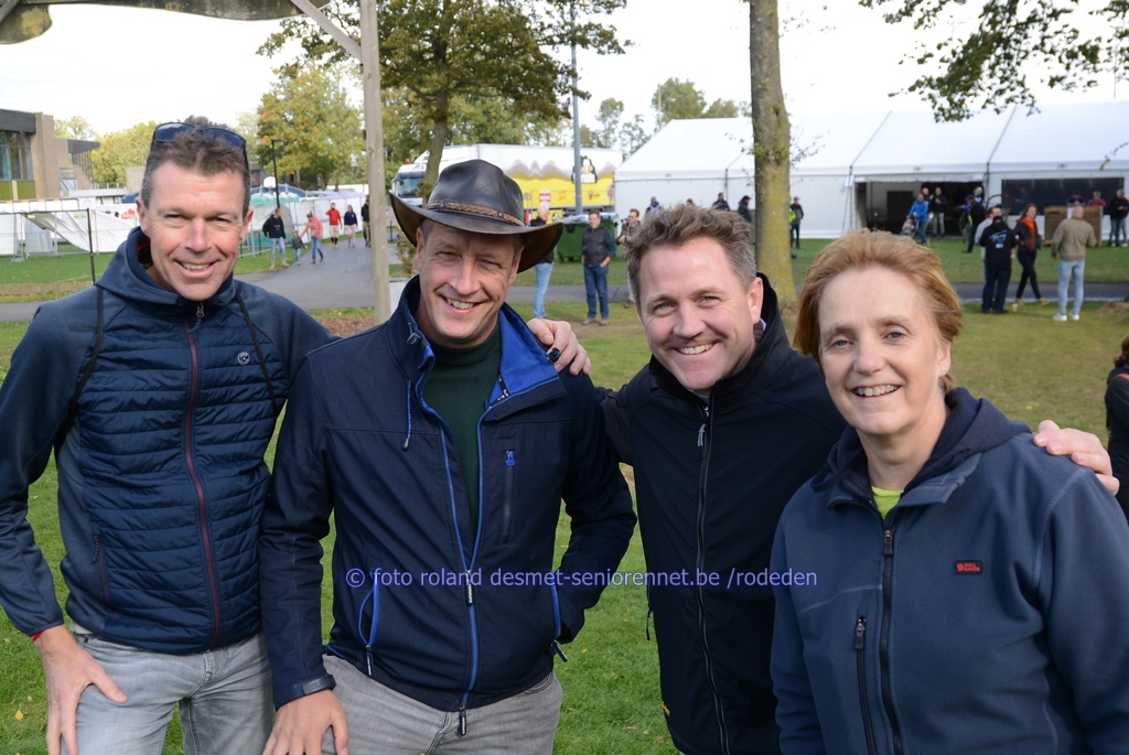 collega's van de schrijvende pers : Hans en Michel oud-renners uit de Tieltse regio : Arnold Compernolle en Jacques Huvaere, zien d'er allebei nog goed uit ! de 2e in de uitslag : Stijn Damen 3e Jochum Ben Felix.... speaker Wilfried op zijn podium