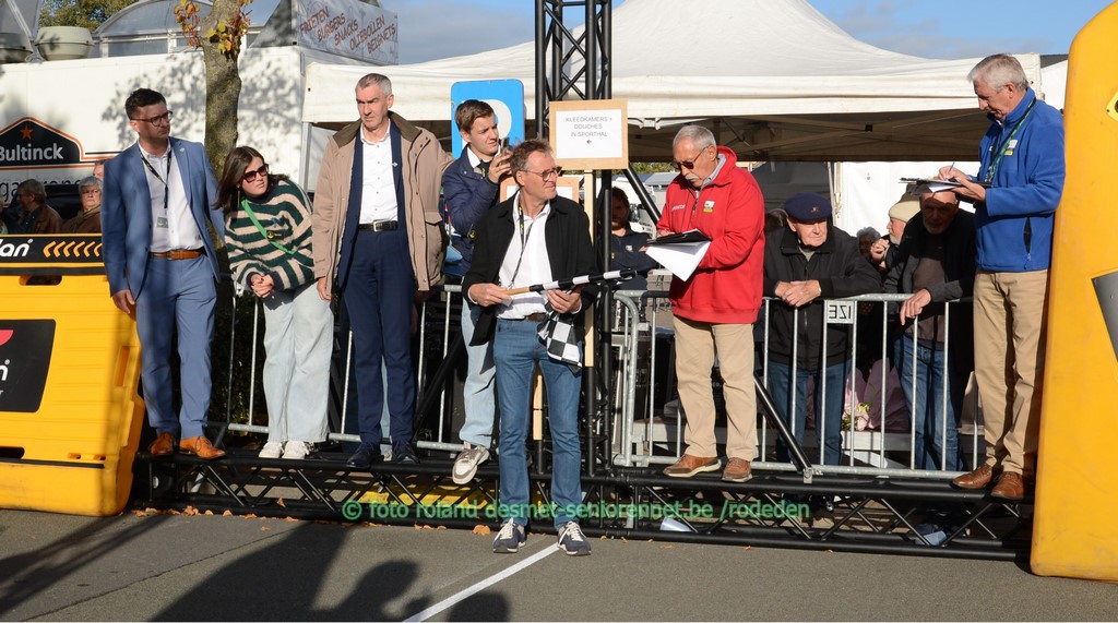 koersdirecteur Christophe Sabbe maakt zich gereed voor het startschot bekend gezicht aan de start..... op deze wielerwedstrijd heb ik veel oude bekenden tegengekomen in het publiek.... .......waar is de tijd.... leeftijdsgenoten.... in de wedstrijd...