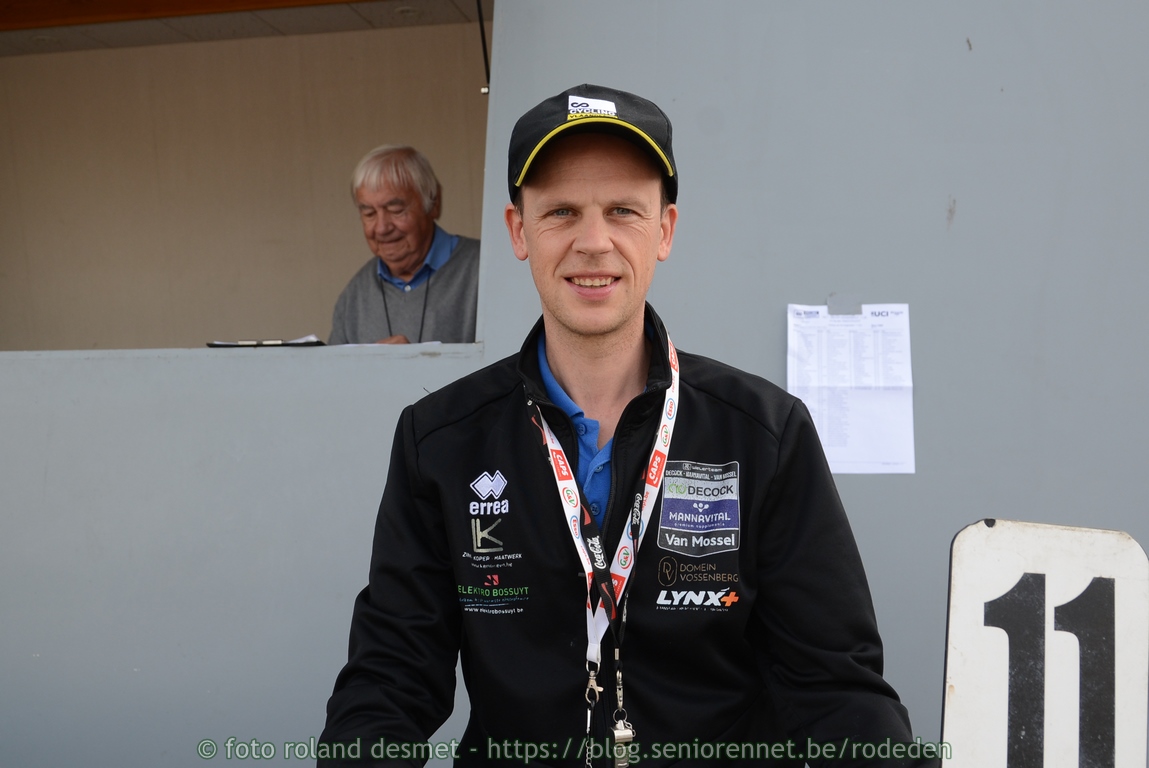 koersdirecteur Christophe Sabbe maakt zich gereed voor het startschot bekend gezicht aan de start..... op deze wielerwedstrijd heb ik veel oude bekenden tegengekomen in het publiek.... .......waar is de tijd.... leeftijdsgenoten.... in de wedstrijd...