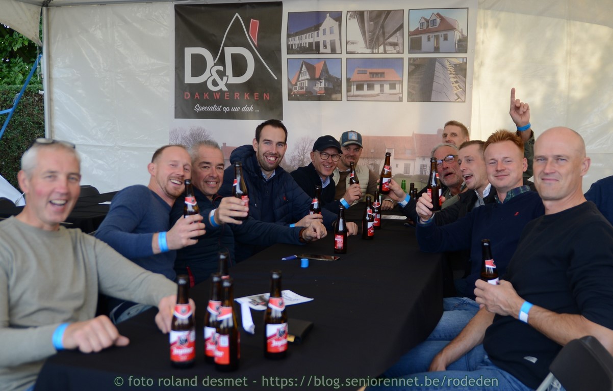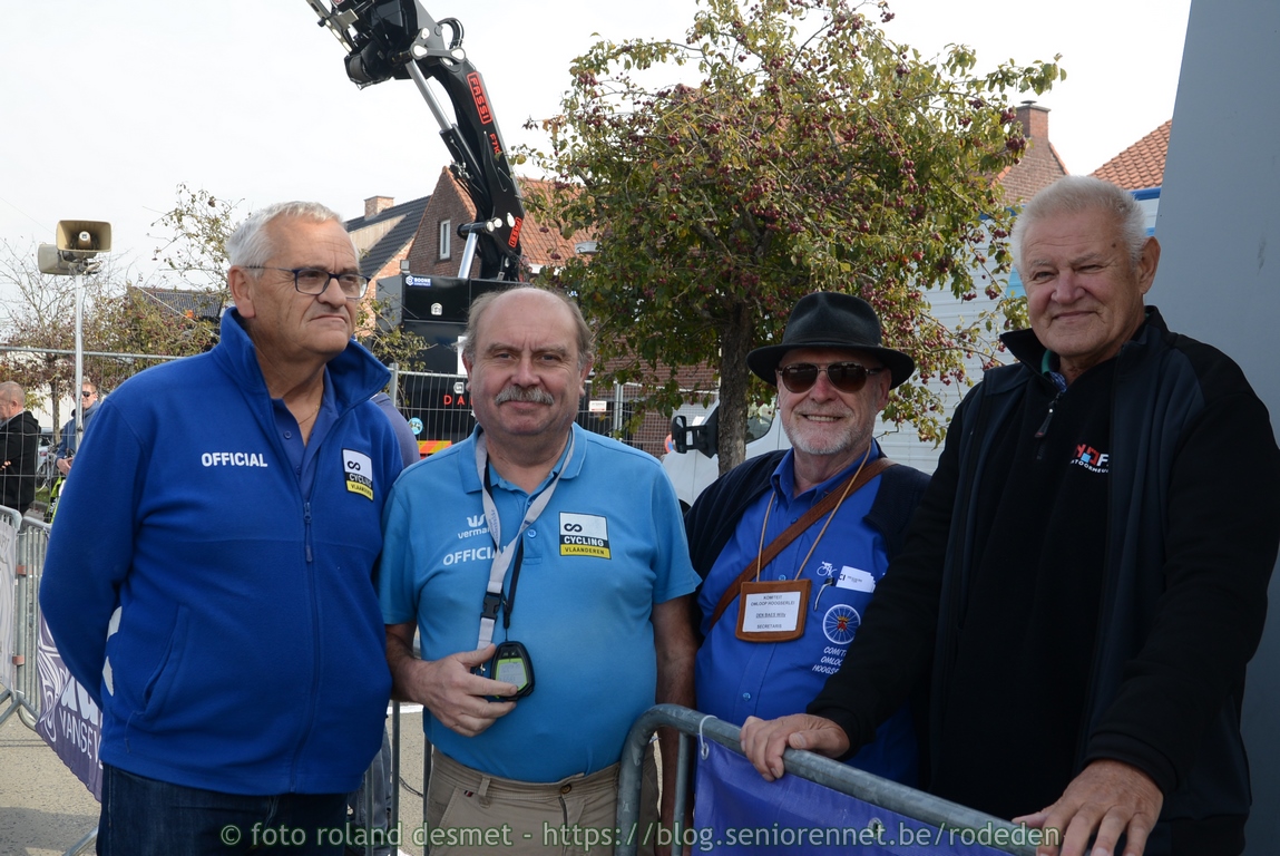 collega's van de schrijvende pers : Hans en Michel oud-renners uit de Tieltse regio : Arnold Compernolle en Jacques Huvaere, zien d'er allebei nog goed uit ! de 2e in de uitslag : Stijn Damen 3e Jochum Ben Felix.... speaker Wilfried op zijn podium