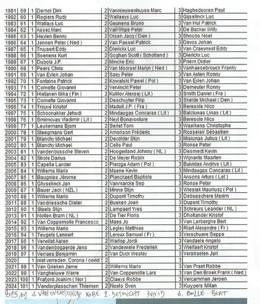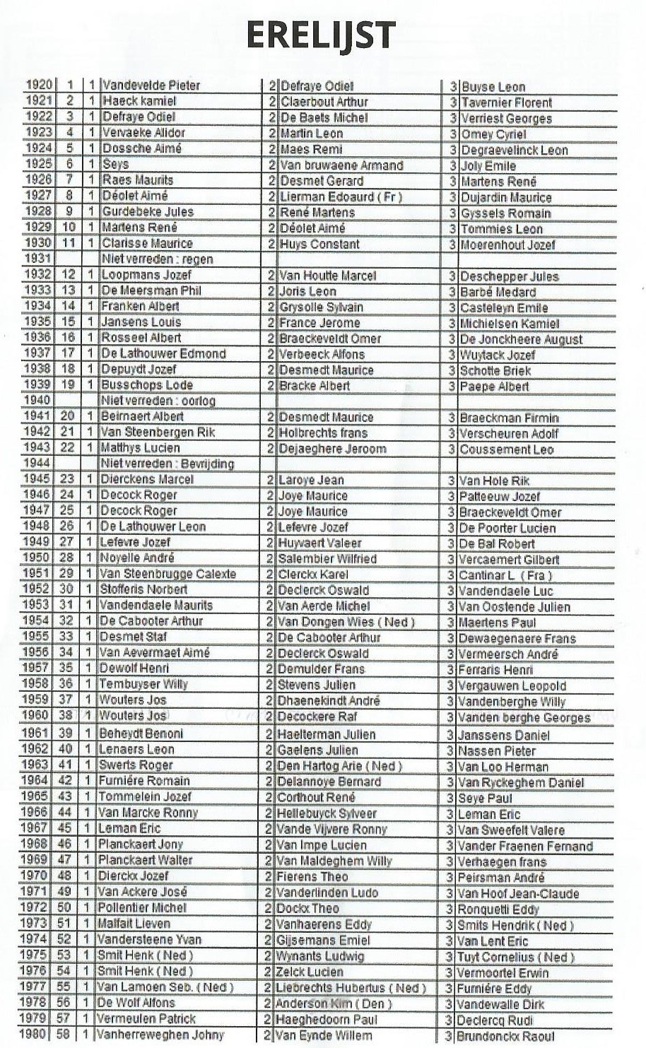 Gerard Dhondt zorgde destijds voor 5 wereldkampioenen aan de start na 12 jaar georganiseerd te hebben, nam Willy Denbaes de organistie van mij over en doet het nog steeds , waarvoor vele dank !